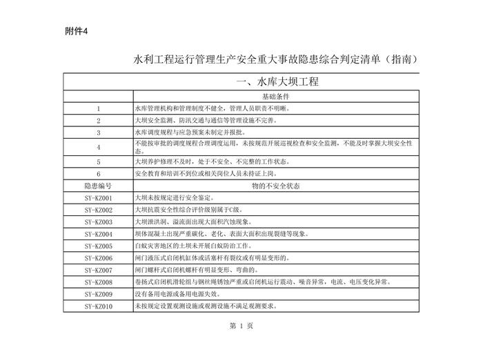 水利工程運(yùn)行管理生產(chǎn)安全重大事故隱患綜合判定清單指南xls
