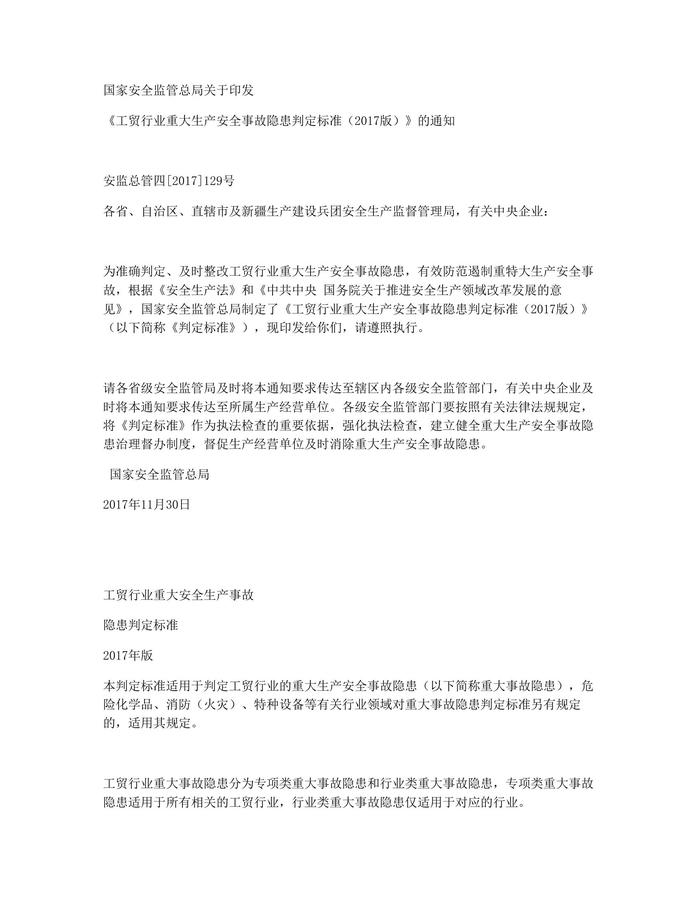 工貿(mào)行業(yè)重大生產(chǎn)安全事故隱患判定標(biāo)準(zhǔn)(2017版)docx