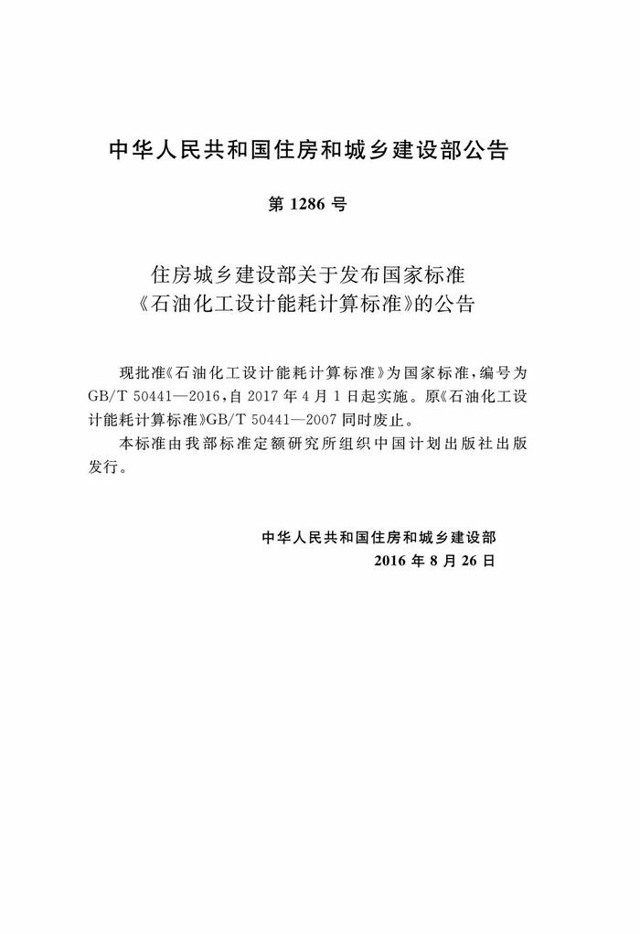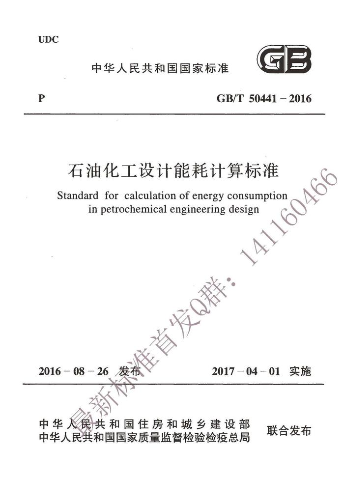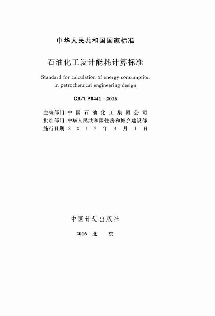 GBT50441-2016 石油化工設(shè)計能耗計算標準pdf