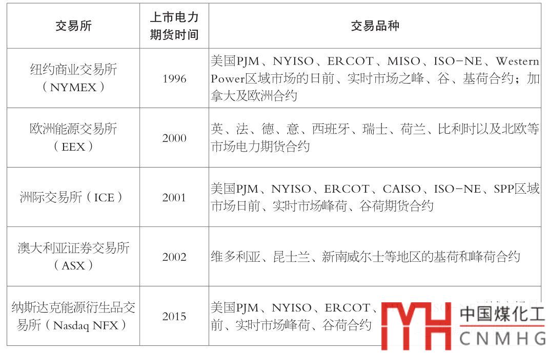部分交易所電力期貨上市時間
