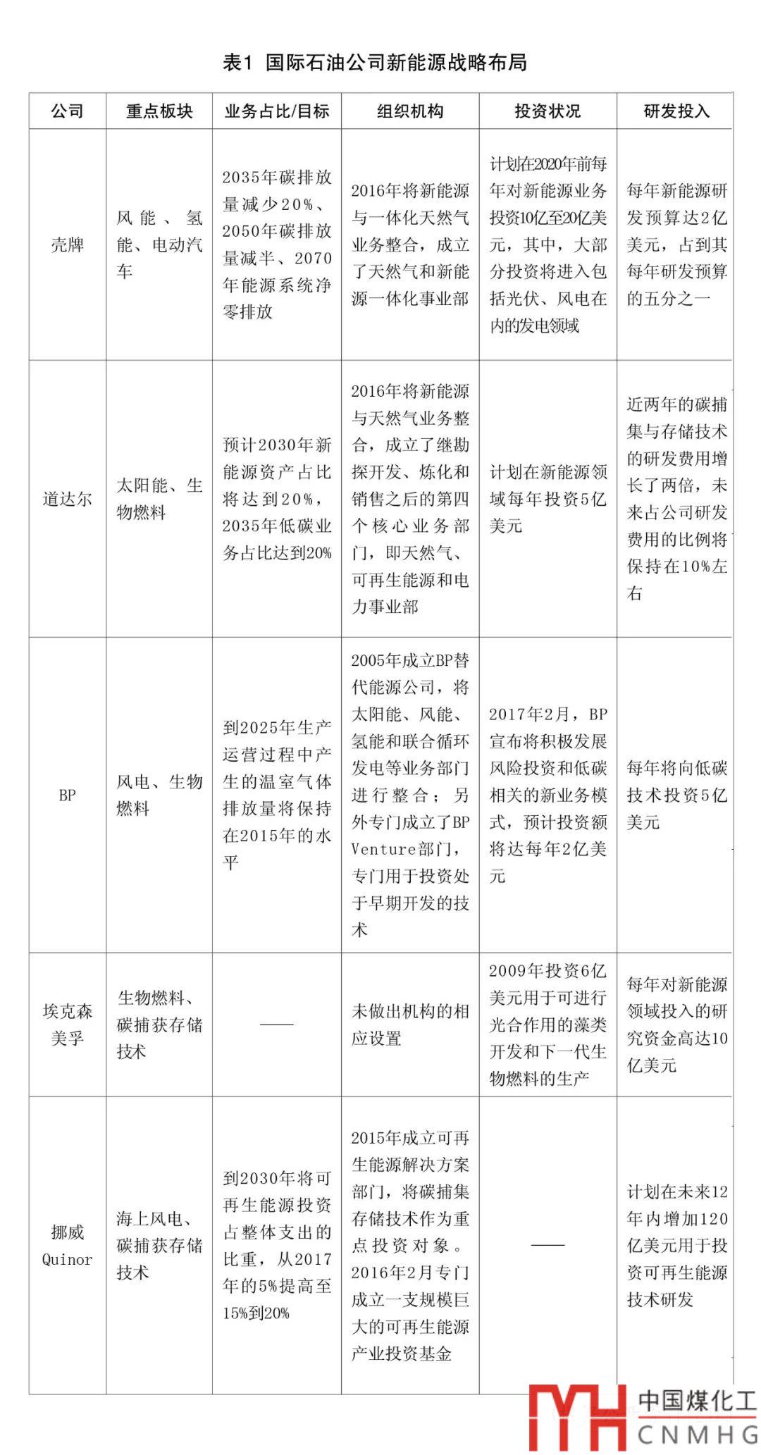 近年來(lái),為順應(yīng)能源轉(zhuǎn)型趨勢(shì),殼牌、BP、道達(dá)爾、??松梨凇⑴餐?guó)家石油公司等國(guó)際石油公司積極倡導(dǎo)可持續(xù)發(fā)展理念,根據(jù)自身特點(diǎn)紛紛提出轉(zhuǎn)型戰(zhàn)略,推進(jìn)低碳和可再生能源產(chǎn)業(yè)布局。其轉(zhuǎn)型發(fā)展戰(zhàn)略呈現(xiàn)出多元化、綠色低碳化、融合化特點(diǎn),見(jiàn)表1。