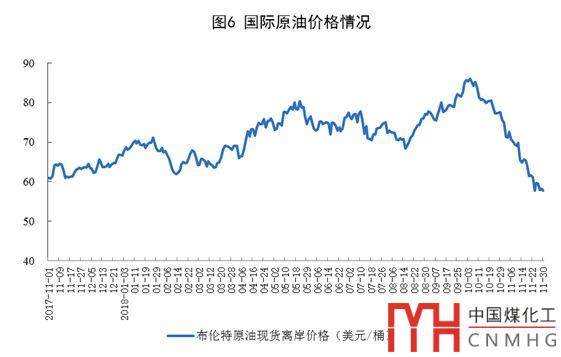 國(guó)際原油價(jià)格連續(xù)下跌。截至11月30日,布倫特原油現(xiàn)貨離岸價(jià)格為57.71美元/桶,比10月底下跌17.13美元/桶。