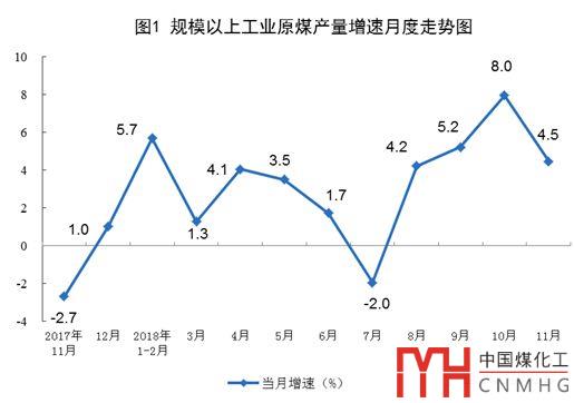 11月份,原煤產(chǎn)量3.2億噸,同比增長(zhǎng)4.5%,比上月回落3.5個(gè)百分點(diǎn);日均產(chǎn)量1051萬(wàn)噸,達(dá)到2015年12月以來(lái)最高水平。1-11月份,原煤產(chǎn)量32.1億噸,同比增長(zhǎng)5.4%。