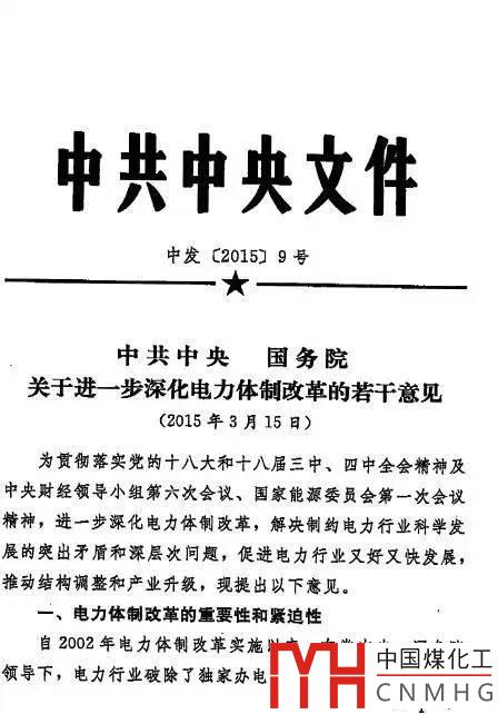 【頭條】中共中央、國務(wù)院發(fā)布電力體制改革方案(全文)