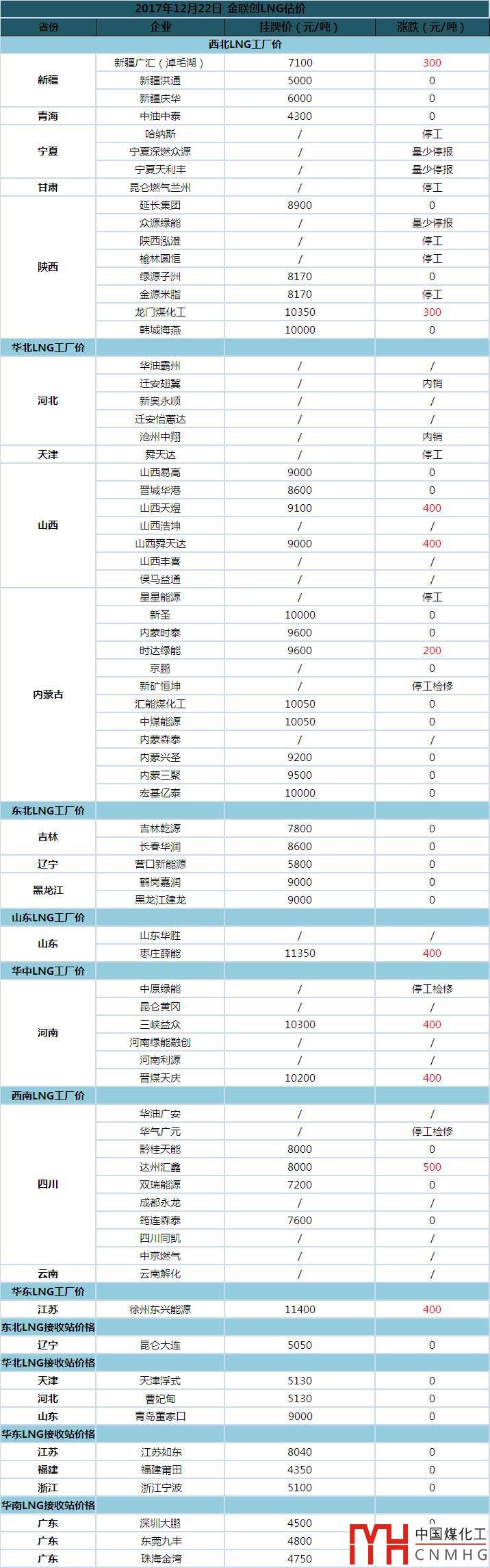 而上周五,12月22日,LNG價格不斷沖高,均在高價位運行,刷新歷史新高。據(jù)金聯(lián)創(chuàng)天然氣微信信息報道,截止到12月22日,北方LNG市場因供應(yīng)持續(xù)減少,市場價格不斷沖高,部分華東地區(qū)液廠價格漲至11400元/噸,而終端接貨價格更是達(dá)到12000元/噸,不斷刷新歷史新高。