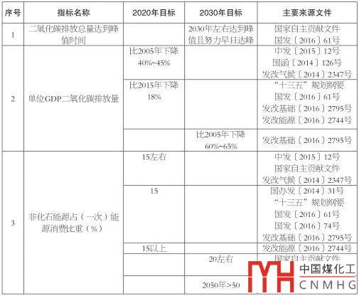 表2 低碳電力發(fā)展主要目標值及來源文件