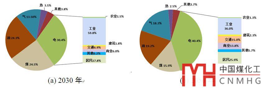 圖7 2030年、2050年終端能源消費結(jié)構(gòu)