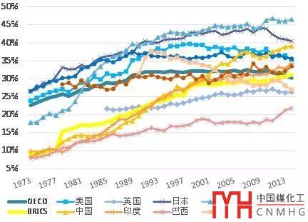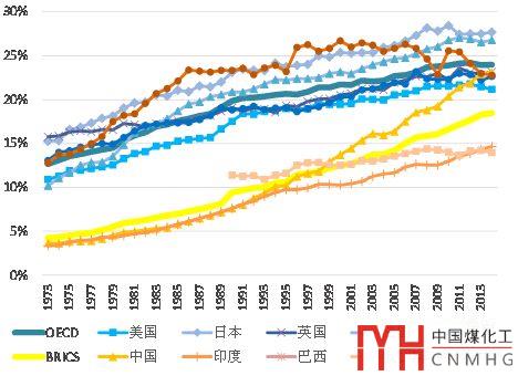 圖1 主要國家能源生產(chǎn)側(cè)電氣化水平