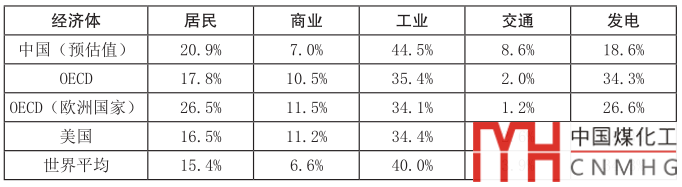 表 主要經(jīng)濟體天然氣消費結(jié)構(gòu)(2018年)