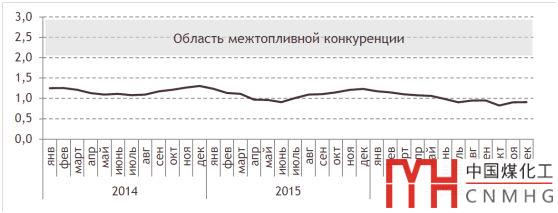 2014~2016年間俄羅斯熱電廠天然氣/煤炭的價(jià)格比