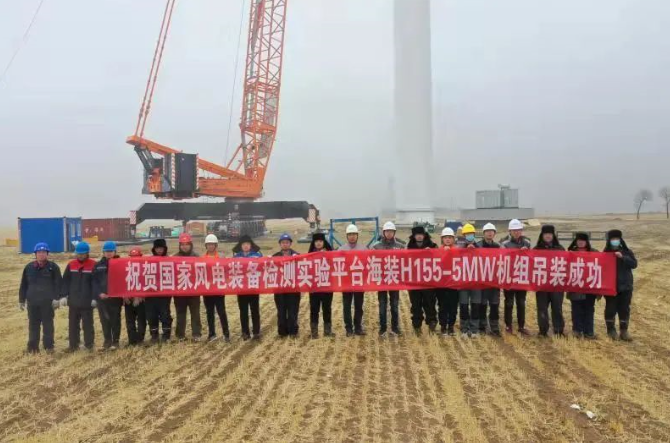 日前,張北風(fēng)電場傳來喜訊,中國海裝陸上5MW平臺首臺——H155-5MW機(jī)組成功吊裝。