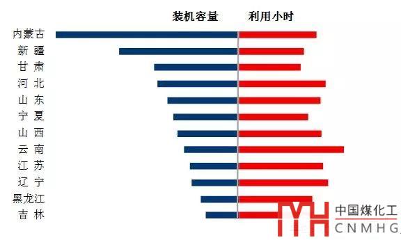 圖5 1-6月份風電裝機較多省份風電裝機容量和設備利用小時
