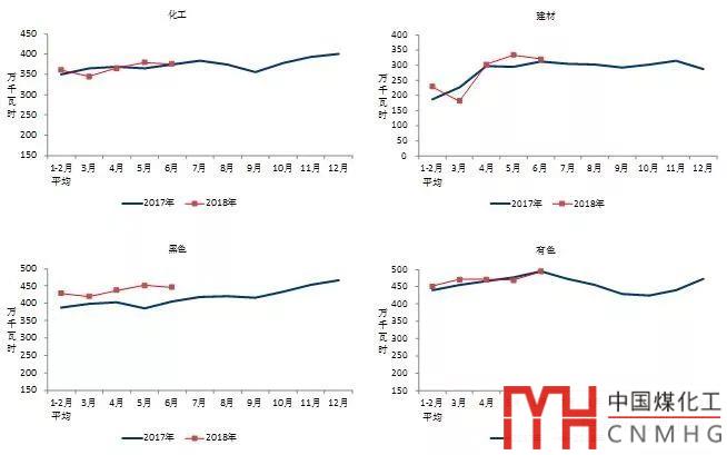 6月份,四大高載能行業(yè)用電量合計1636億千瓦時,同比增長4.0%,占全社會用電量的比重為28.9%。其中,化工行業(yè)用電量376億千瓦時,同比增長2.5%;建材行業(yè)用電量319億千瓦時,同比增長3.6%;黑色金屬行業(yè)用電量447億千瓦時,同比增長10.4%;有色金屬冶煉行業(yè)494億千瓦時,同比增長0.2%。