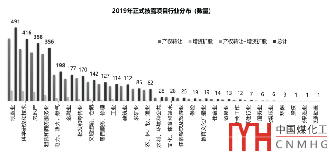 圖1 2019年國有產(chǎn)權(quán)交易所披露項(xiàng)目數(shù)量行業(yè)分布示意