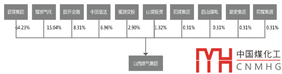 混改完成后,晉煤集團(tuán)持股64.23%,擁有絕對(duì)控股權(quán)。第二大股東煤炭氣化持股15.04%,其余股東持股比例均小于10%。