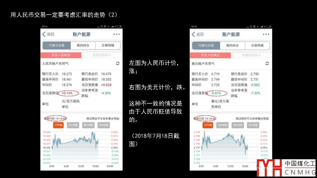 下面是另一個例子,以美元計價的價格是下跌的,但是以人民幣計價的價格是上漲的。