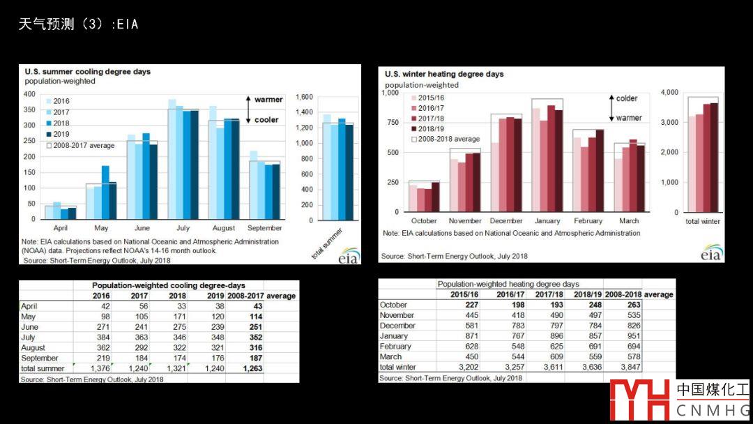 上面這是EIA的HDD和CDD的預測,根據(jù)它的判斷,今年夏季不如去年夏天熱,但是今年冬天恐怕比去年冷一些。