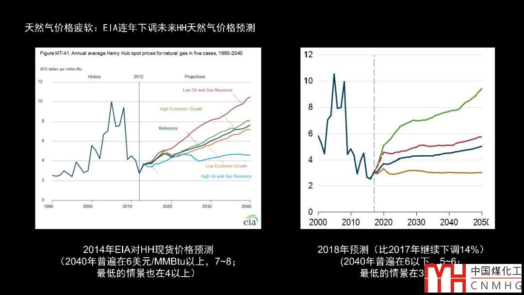 同樣是EIA的預測,一個是2014年,一個是2018年,價格預測的上限有了大幅下調。