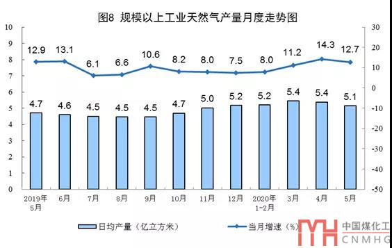 5月份,國內(nèi)規(guī)模以上工業(yè)原煤生產(chǎn)由增轉(zhuǎn)降,原油和電力生產(chǎn)加快,天然氣生產(chǎn)保持較快增長。