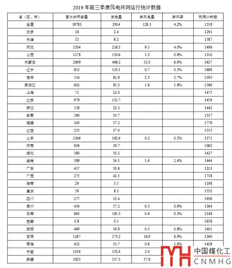 數(shù)據(jù) | 2019年前三季度風(fēng)電并網(wǎng)運(yùn)行情況