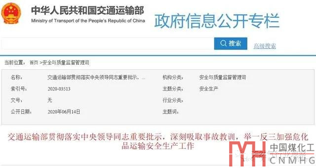 6月14日,為深刻汲取事故教訓(xùn),舉一反三,交通運(yùn)輸部印發(fā)《關(guān)于切實(shí)做好危化品運(yùn)輸?shù)戎攸c(diǎn)領(lǐng)域安全生產(chǎn)工作堅(jiān)決遏制重特大安全生產(chǎn)事故的緊急通知》,部署加強(qiáng)行業(yè)安全生產(chǎn)工作。