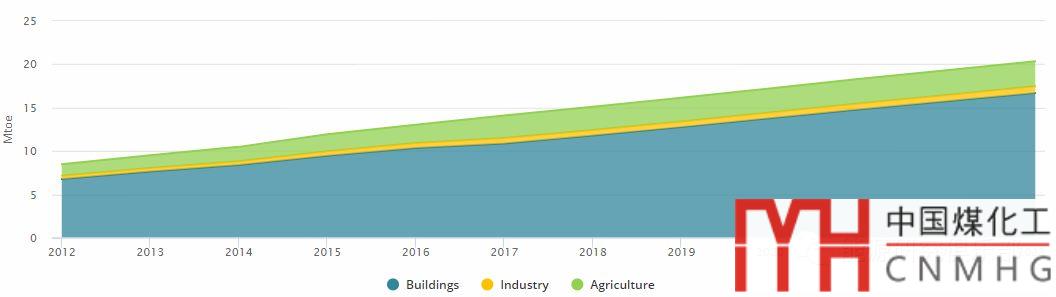 從消費(fèi)部門看,建筑物房屋和農(nóng)業(yè)部門的可再生能源供熱增速(27%)是工業(yè)部門可再生能源供熱增速(13%)的兩倍有余。工業(yè)部門可再生能源供熱絕大部分是生物質(zhì)能供熱。對(duì)于建筑物房屋和農(nóng)業(yè)部門,生物質(zhì)能供熱約占可再生能源供熱的一半,可再生能源電力供熱也占據(jù)相當(dāng)大的比重。