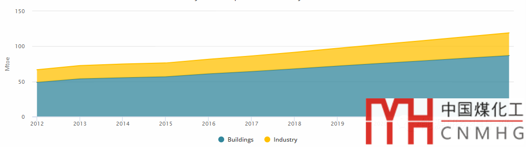 圖5 2012~2023年全球生物質(zhì)能供熱消費(fèi)(2018年后為預(yù)測(cè)數(shù)據(jù))