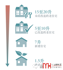 采用被動(dòng)房超低能耗建筑技術(shù)體系和提升可再生能源使用比例是德國(guó)實(shí)現(xiàn)能效目標(biāo)的主要技術(shù)路線。德國(guó)70%的住宅年齡超過(guò)35年,其建造時(shí)間是在第一個(gè)《保溫條例》通過(guò)之前。許多建筑隔熱處理不足,鍋爐老舊,供暖使用的也是燃油或天燃?xì)獾然茉?。一般德?guó)家庭的年供暖需求約為每平方米居住面積145千瓦時(shí),相當(dāng)于14.5升石油。高能效的新建筑(被動(dòng)式節(jié)能住宅)僅需十分之一(見(jiàn)圖14)。既有建筑可以通過(guò)節(jié)能改造和改用可再生能源等措施降低一次能源需要量最多可達(dá)80%。改造措施包括提高建筑圍護(hù)結(jié)構(gòu)的保溫隔熱性能、更新建筑構(gòu)件、升級(jí)供熱供冷系統(tǒng)和改進(jìn)控制技術(shù)。德國(guó)僅在2015年一年就為建筑物節(jié)能改造投入了530億歐元。德國(guó)政府通過(guò)利率優(yōu)惠的貸款和補(bǔ)貼為這類改造措施提供支持。