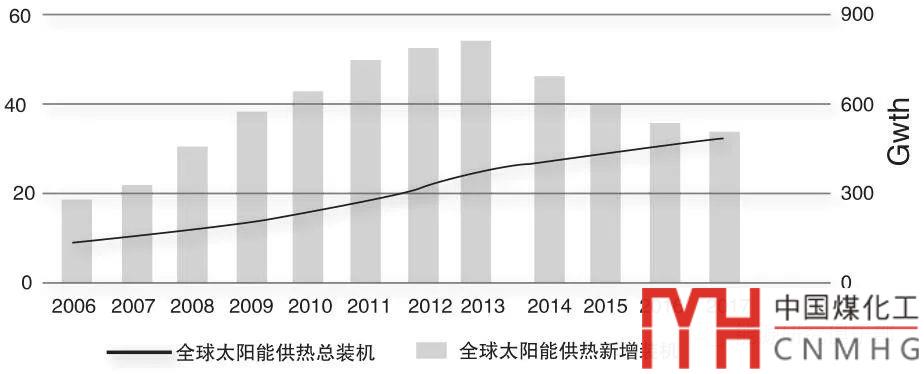 圖6 全球太陽(yáng)能供熱裝機(jī)情況