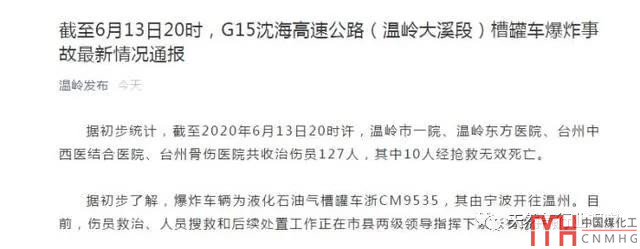 6月13日下午4點(diǎn)40分左右,G15沈海高速溫嶺市大溪鎮(zhèn)良山村附近高速公路上一槽罐車爆炸沖出高速公路,截至20時30分,已造成10人死亡、117人受傷,倒塌房屋內(nèi)有人員被困失聯(lián)。