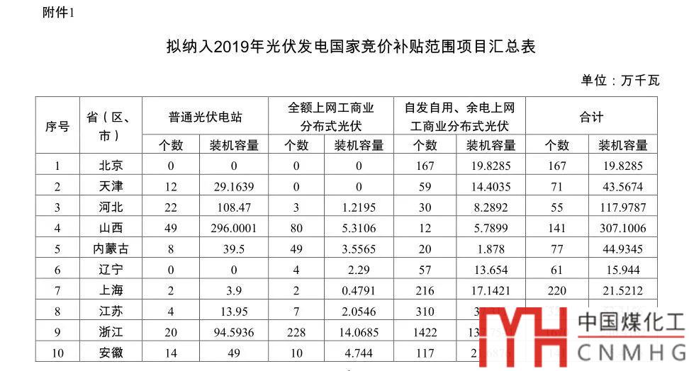 附件:1.擬納入2019年光伏發(fā)電國家競價(jià)補(bǔ)貼范圍項(xiàng)目匯總表