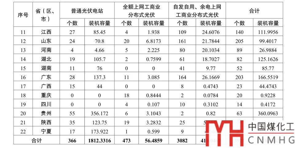從項(xiàng)目類型看,普通光伏電站項(xiàng)目366個(gè),裝機(jī)容量1812萬千瓦,占總?cè)萘勘壤秊?9.5%,主要分布在中西部地區(qū)。分布式光伏項(xiàng)目3555個(gè),裝機(jī)容量466萬千瓦,占總?cè)萘勘壤秊?0.5%(全額上網(wǎng)分布式項(xiàng)目473個(gè),裝機(jī)容量56萬千瓦,占總?cè)萘勘壤秊?.5%;自發(fā)自用、余電上網(wǎng)分布式項(xiàng)目3082個(gè),裝機(jī)容量410萬千瓦,占總?cè)萘勘壤秊?8.0%),主要分布在東部沿海地區(qū)。