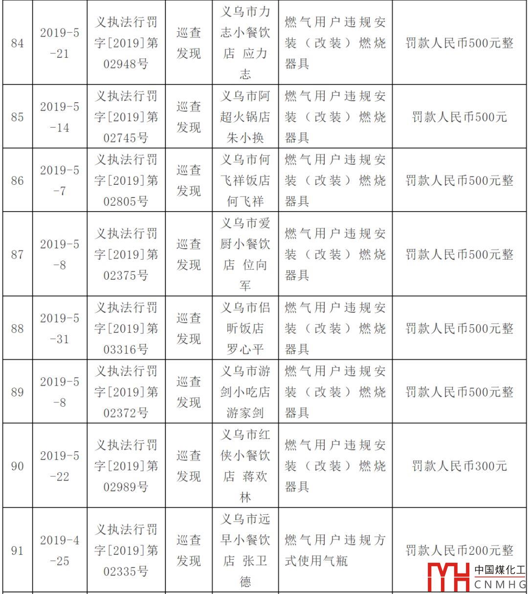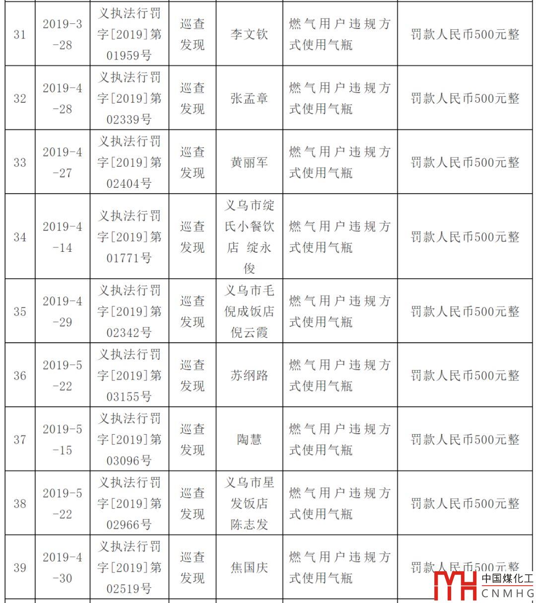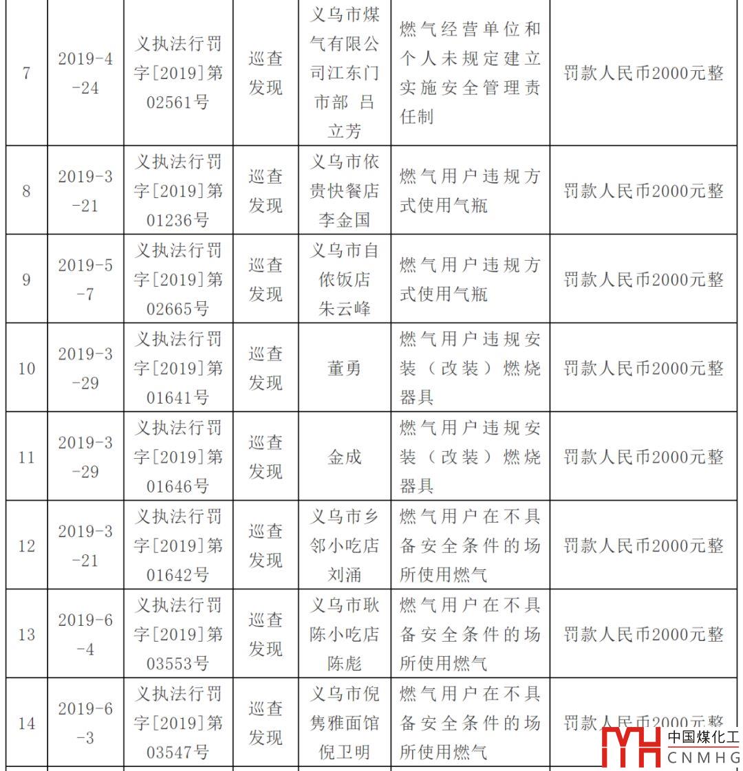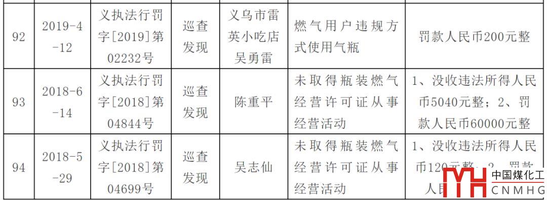 處罰燃?xì)庥脩?!附上義烏市涉燃?xì)庑姓幜P案件信息