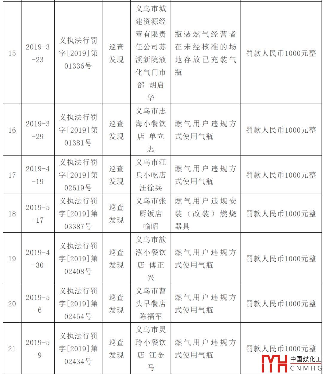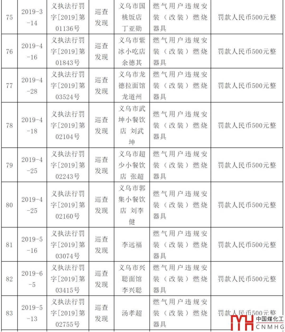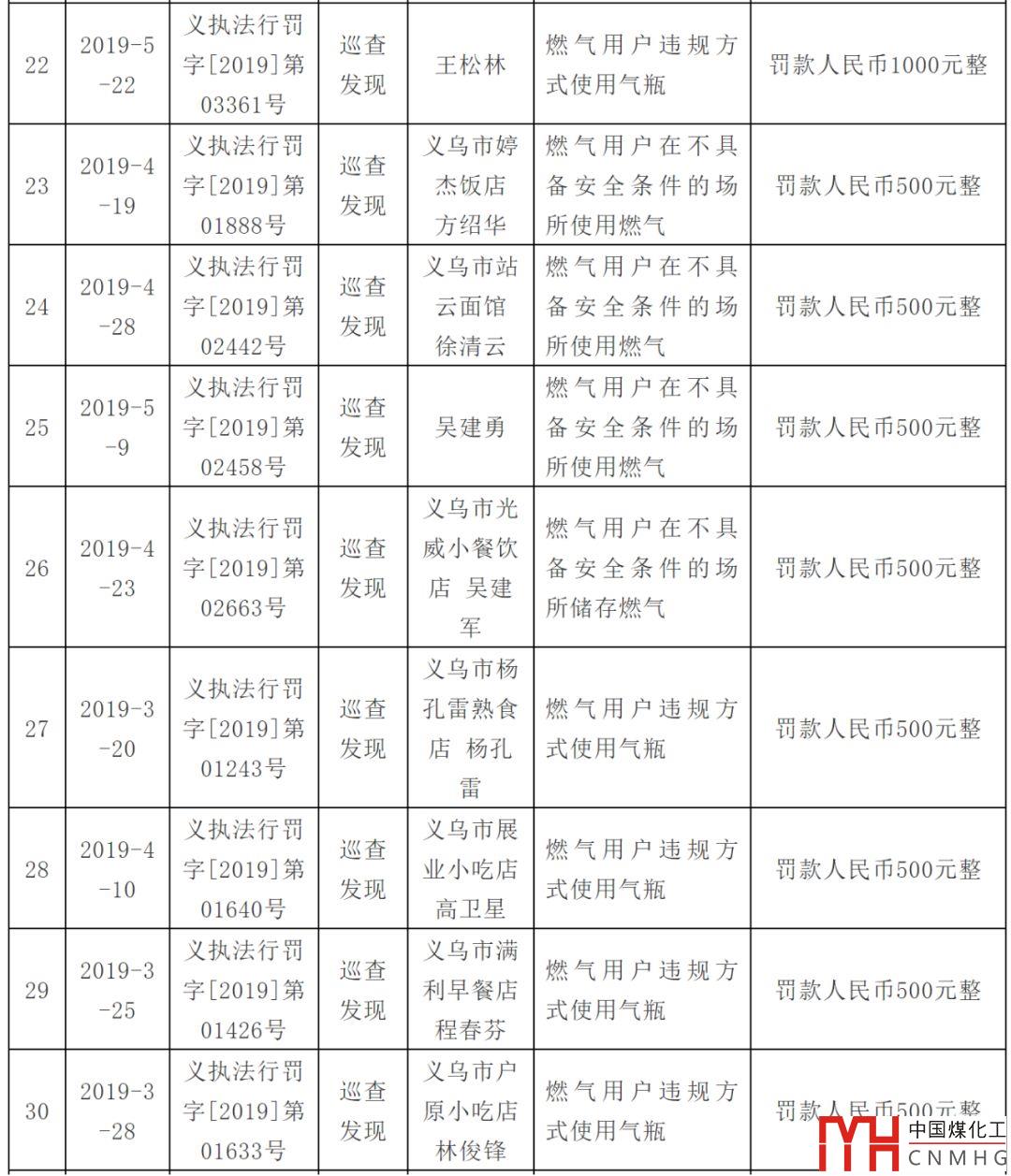 處罰燃?xì)庥脩?!附上義烏市涉燃?xì)庑姓幜P案件信息