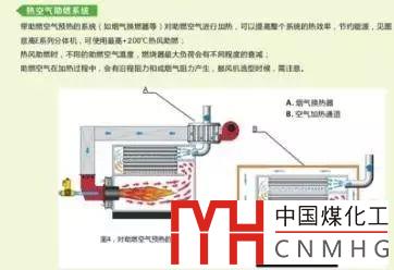 由于導(dǎo)熱油鍋爐的油溫較高,因此排煙溫度高于蒸汽鍋爐,能達(dá)到320℃左右。如果煙氣熱量不能合理利用,將大大的增加燃?xì)獾暮牧?,所以?dǎo)熱油鍋爐一般都選用“熱風(fēng)助燃燃燒器”(如下圖)。