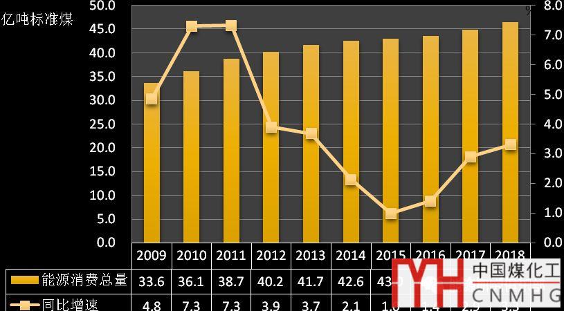 圖1-5 2009~2018年能源消費(fèi)總量及增速