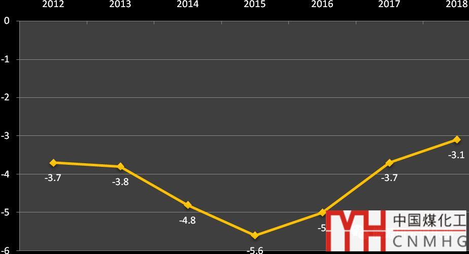 2011年我國(guó)能源消費(fèi)彈性系數(shù)為0.77,表明經(jīng)濟(jì)發(fā)展對(duì)能源消費(fèi)的依賴程度較高。2012年和2013年下降到0.5左右,2014年下降到0.29,2015年最終下降到0.14,2016年開始回升,2017年為0.42,2018年為0.5。需要注意經(jīng)濟(jì)增長(zhǎng)與能源消費(fèi)之間的數(shù)據(jù)“背離”。