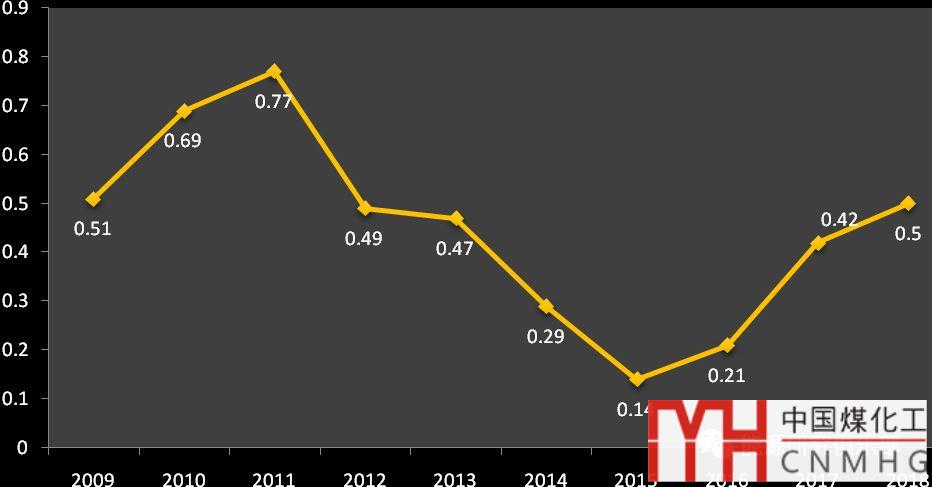 圖1-8 2009~2018年能源消費(fèi)彈性系數(shù)