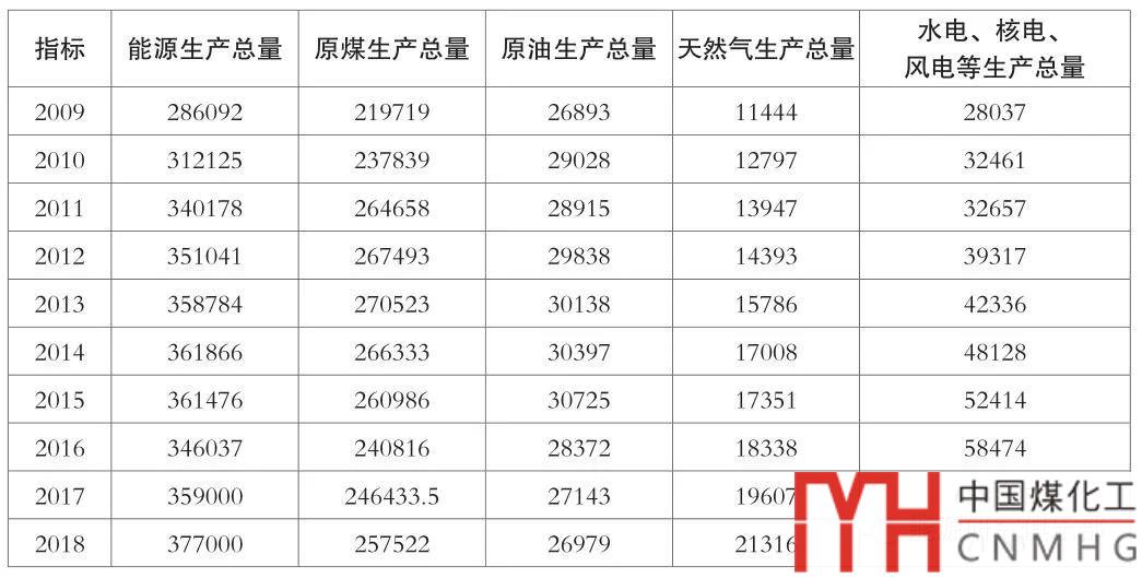 表1-1 2009~2018年一次能源生產(chǎn)情況(單位:萬(wàn)噸標(biāo)準(zhǔn)煤)
