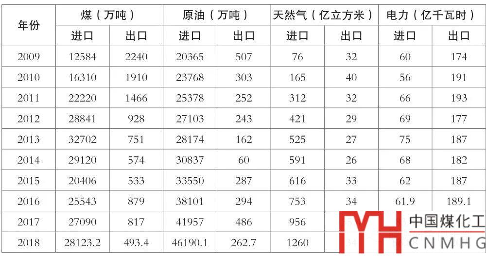 表1-3 2009~2018年我國(guó)能源進(jìn)出口情況