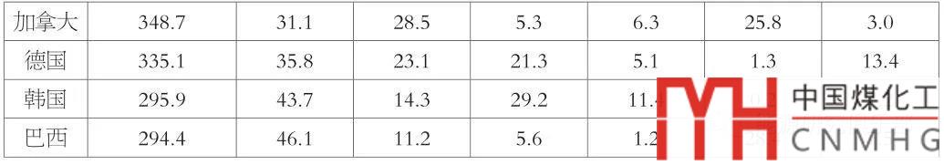在一次能源消費(fèi)結(jié)構(gòu)中,中國(guó)、印度煤炭占比均超過50%,主體能源地位明顯。美國(guó)、歐盟、俄羅斯、日本均以油氣為主要消費(fèi)品種,合計(jì)占比均超過60%。加拿大、巴西能源消費(fèi)結(jié)構(gòu)中,水電占比較高,超過25%。