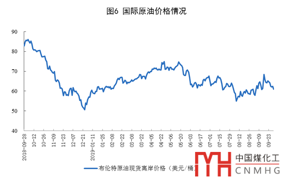 9月份國際原油價格先漲后跌。9月30日布倫特原油現(xiàn)貨離岸價格為60.99美元/桶,與8月30日基本持平。