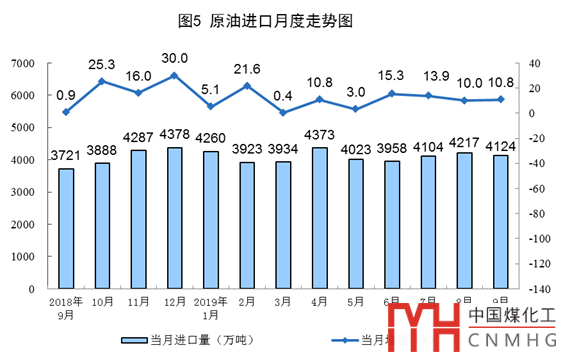 9月份,進口原油4124萬噸,同比增長10.8%,環(huán)比減少93萬噸。前三季度,進口原油36904萬噸,同比增長9.7%,增速比上半年加快0.9個百分點。