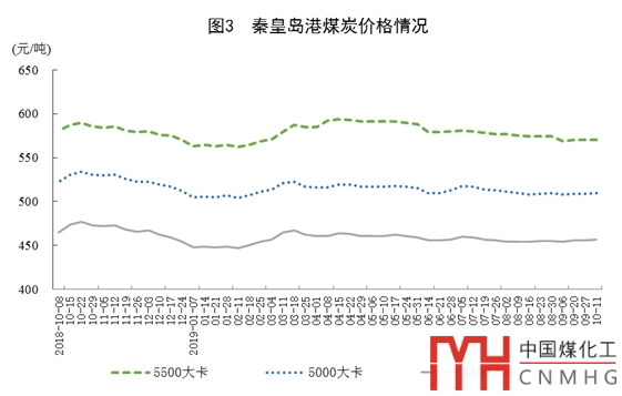 煤炭價格保持平穩(wěn)。9月27日,秦皇島5500大卡和5000大卡煤炭綜合交易價格分別為每噸570元和509元,比8月底分別回落4元和1元;4500大卡為每噸456元,比8月底上漲1元。