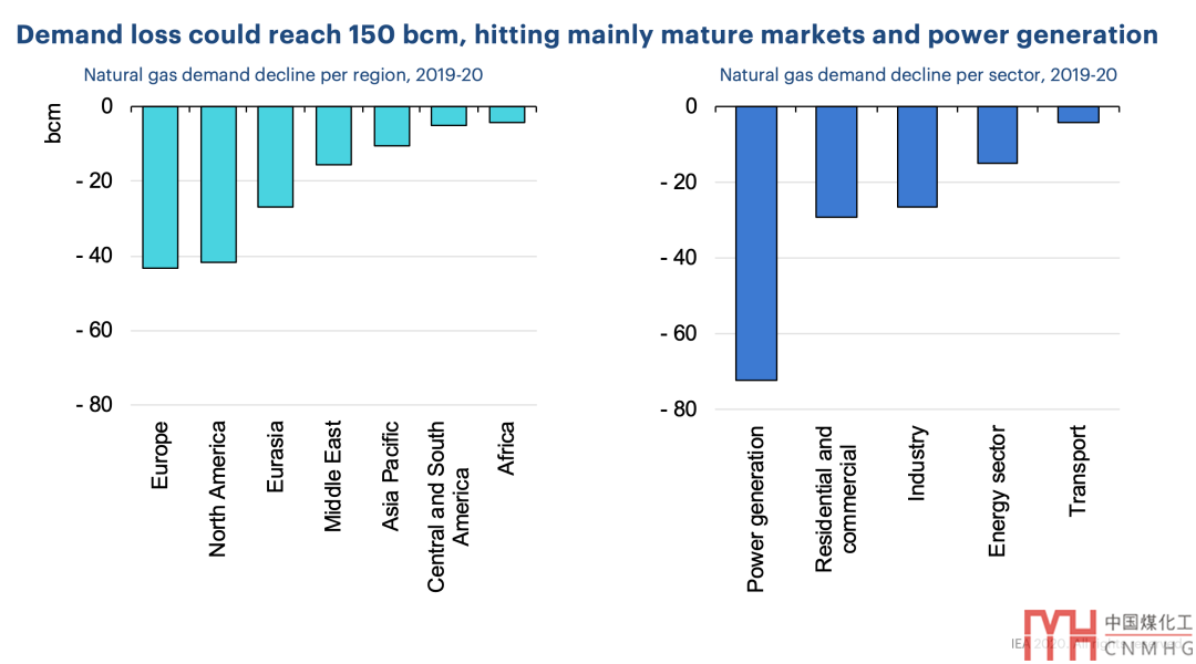 2020年需求下降約為1500億立方米,主要來自歐洲和北美市場及發(fā)電行業(yè)