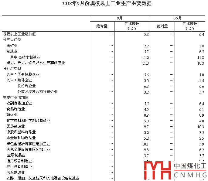 數(shù)據(jù) | 國家統(tǒng)計局:2018年9月份規(guī)模以上工業(yè)增加值增長5.8%