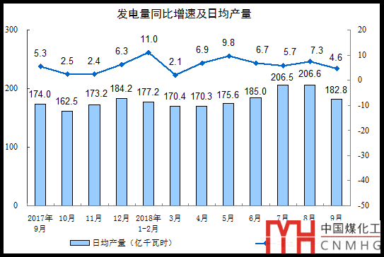 分三大門類看,9月份,采礦業(yè)增加值同比增長2.2%,增速較8月份加快0.2個百分點;制造業(yè)增長5.7%,回落 0.4個百分點;電力、熱力、燃氣及水生產(chǎn)和供應(yīng)業(yè)增長11.0%,加快1.1個百分點。