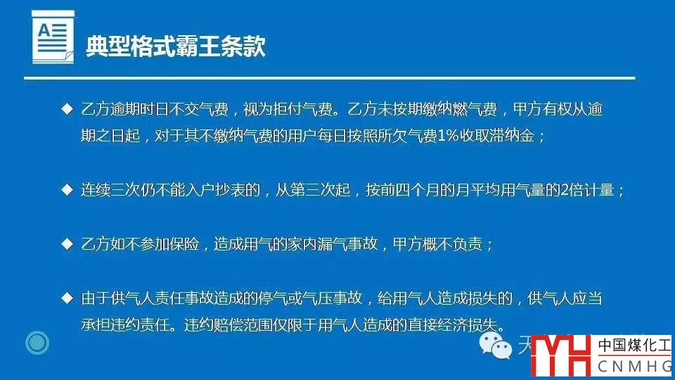 編者按:這是一個PPT課件的分享,主題為:燃氣企業(yè)面臨的法律風險和政策環(huán)境。今天發(fā)出上篇即法律風險部分,主要包括五個方面內(nèi)容:一是特許經(jīng)營糾紛,明確了特許經(jīng)營糾紛常見的各種形式;二是如何避免違規(guī)決策,特別適合國有燃氣企業(yè);三是關(guān)于違章用氣和竊氣處理;四是格式合同的處理和應(yīng)對;五是如何面對公用事業(yè)反壟斷的浪潮。課件體系嚴謹、內(nèi)容詳實,案例帶有視頻,非常值得收藏哦。(手機橫屏閱讀效果更好)