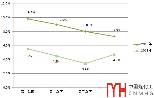 圖22018、2019年全國全社會用電量季度增速