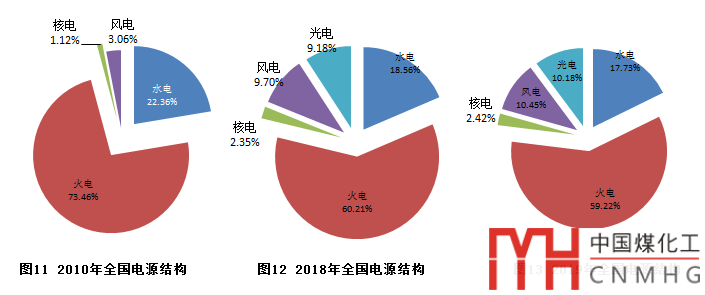 從電源結構看,十年來我國傳統(tǒng)化石能源發(fā)電裝機比重持續(xù)下降、新能源裝機比重明顯上升。2019年火電裝機比重較2010年下降了14.24個百分點,風電、光電、水電、核電發(fā)電裝機比重共上升了14.24個百分點,發(fā)電裝機結構進一步優(yōu)化。